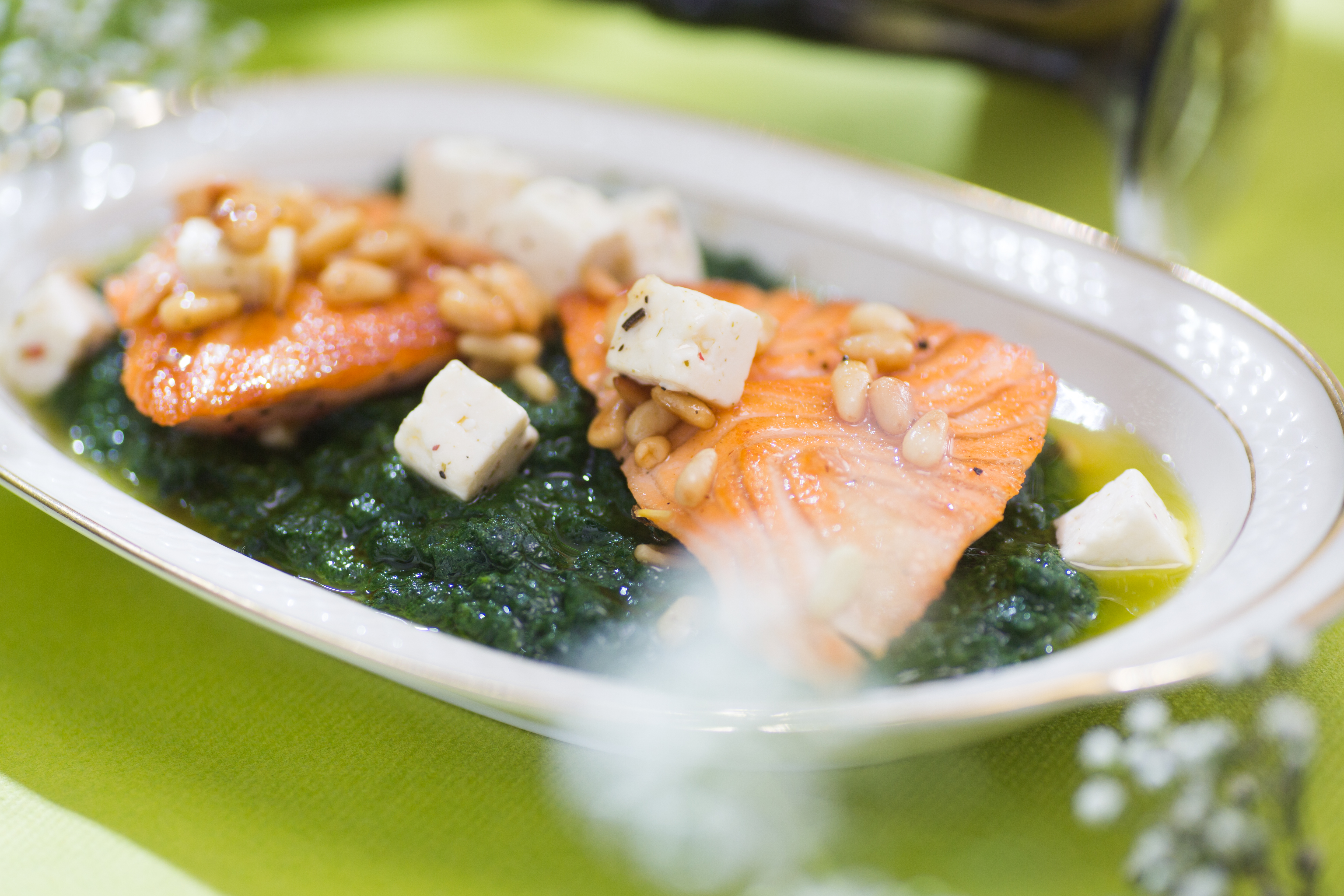 Wraps with cod, pesto mayonnaise, mixed salad and feta cheese