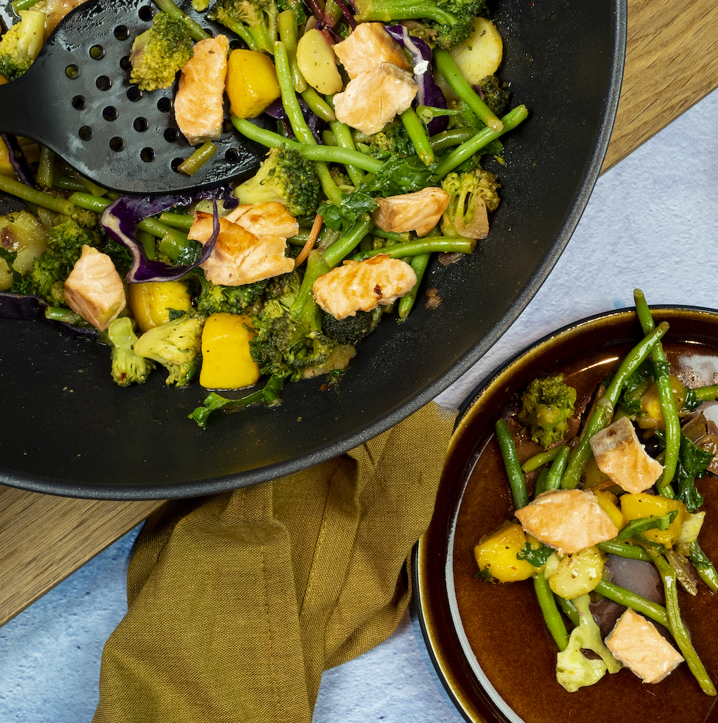 Wok med laks og mango